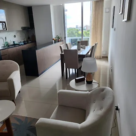 The 2-room Departamento De Lujo Apartment Santa Cruz de La Sierra is around 700 metres from Chaplin Show and features a terrace with a swimming pool. The 80 m^2 apartment is located about 5 minutes on foot from Capilla Maria Magdalena and relatively near Barrio Equipetrol.